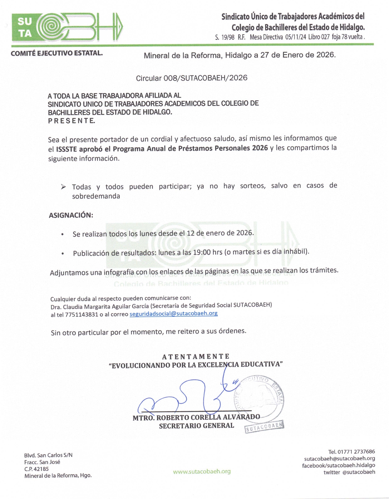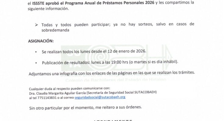 Circular #08 Programa Anual Prestamos ISSSTE