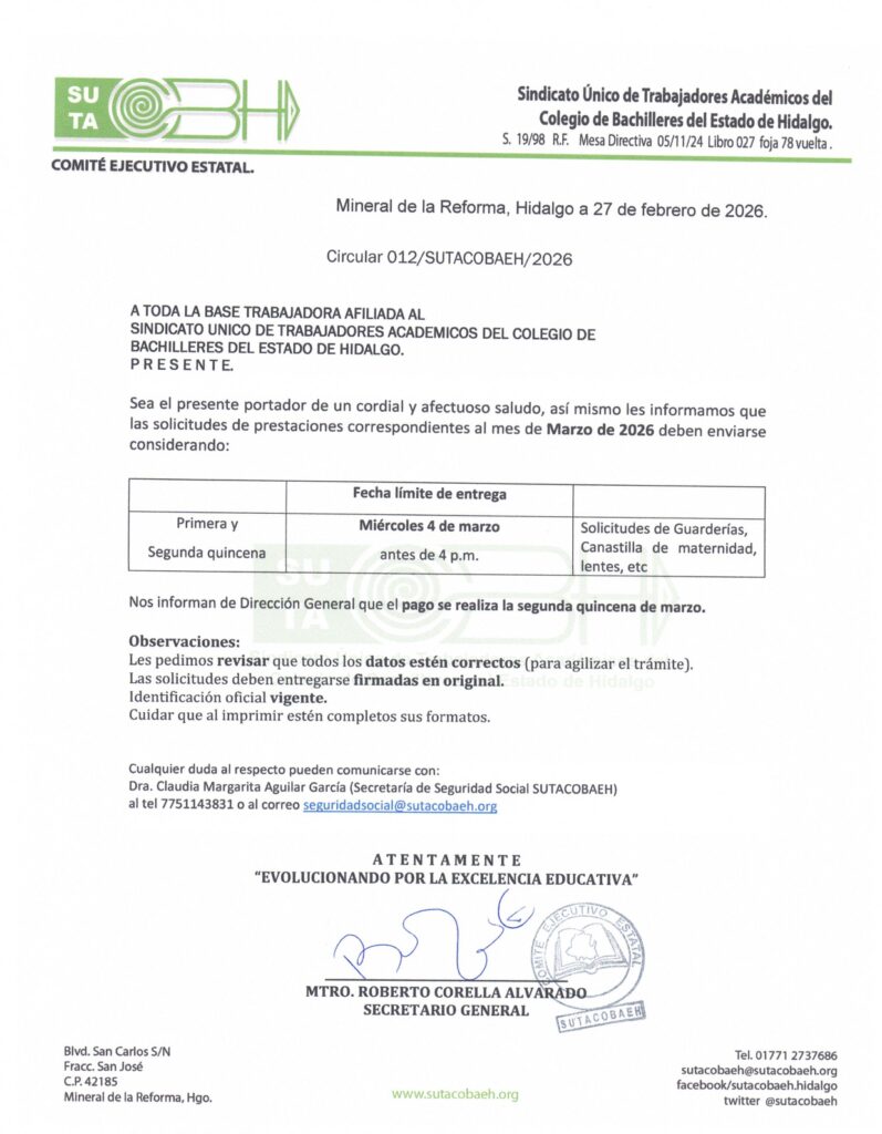 • Circular # 12/2026 Prestaciones marzo