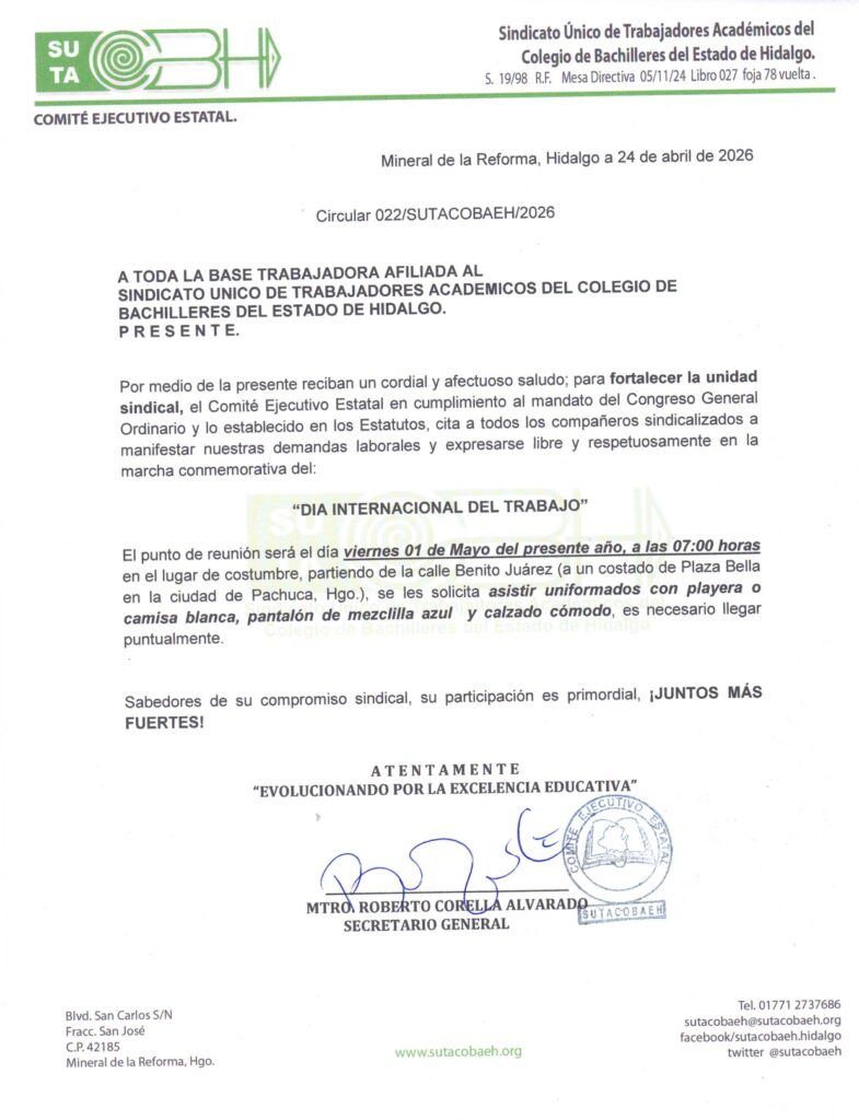 Circular # 22/2026 1ro. de Mayo